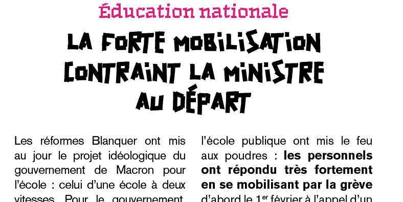 Cette mobilisation qui a obtenu le départ de la ministre montre à quel point une unité syndicale large et combative permet de taper fort, de construire des grèves majoritaires, contexte indispensable à la construction de grèves reconductibles pour gagner.