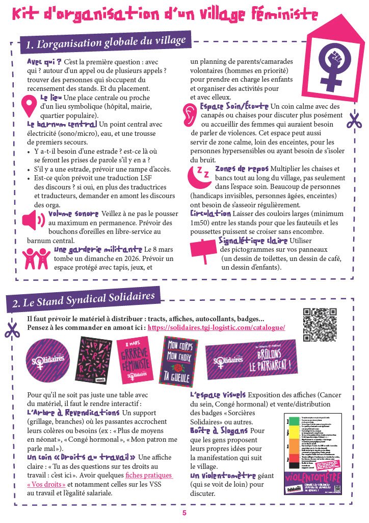 - Une garderie militante : Le 8 mars tombe un dimanche en 2026. Prévoir un espace protégé avec tapis, jeux, et un planning de parents/camarades volontaires (hommes en priorité) pour prendre en charge les enfants et organiser des activités pour et avec elleux.
