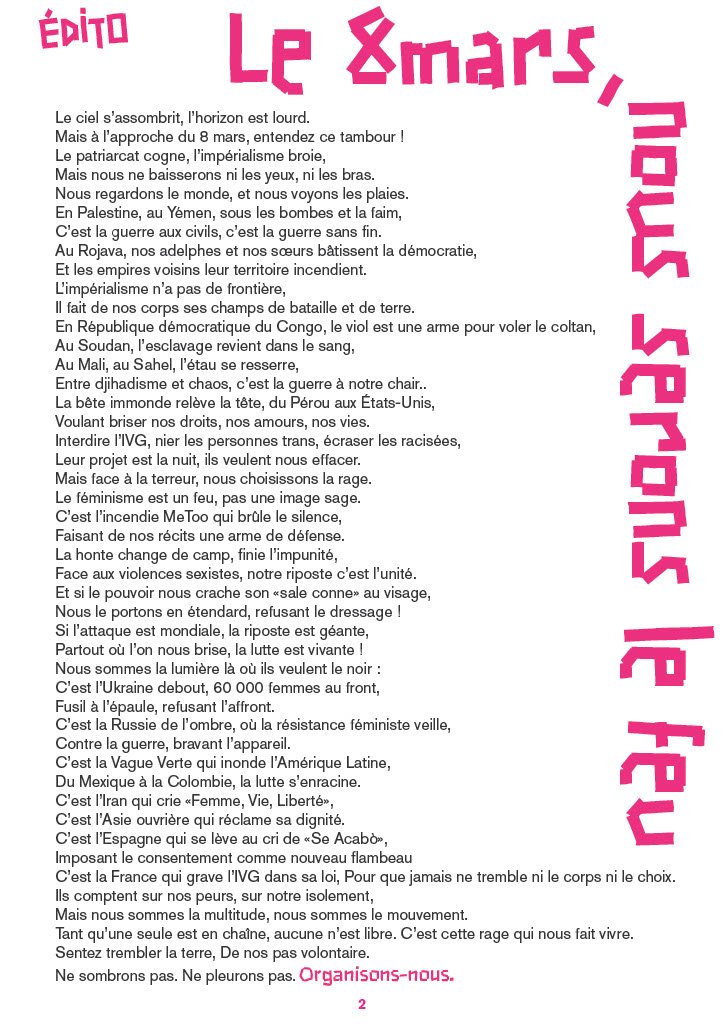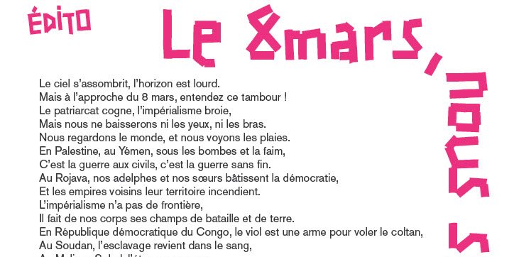 Le 8 mars, nous serons le feu