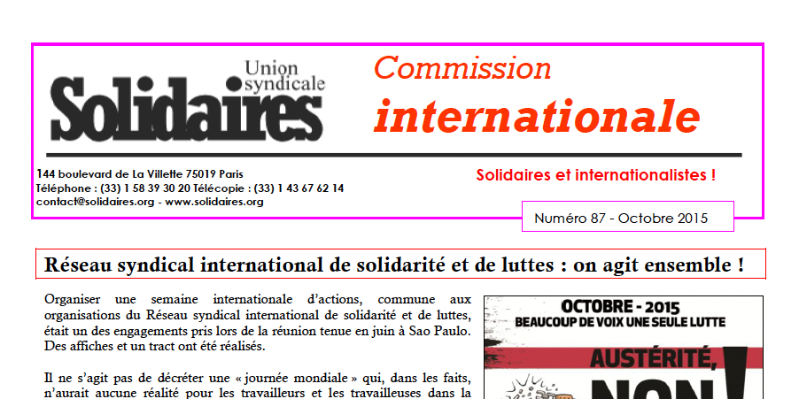 - Réseau syndical international de solidarité et de luttes : on agit ensemble !